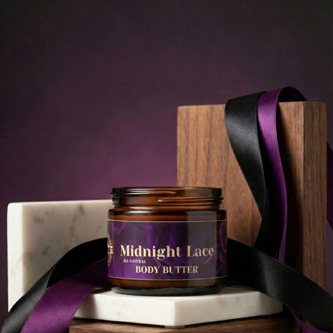 Formulated with natural butters, extracts, and essential vitamins, Midnight Lace deeply hydrates and shields your skin, delivering necessary nutrients for a radiant, healthy glow.
